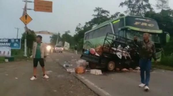 Musionline.co.id, Muratara - Bus penumpang Family Raya Ceria bertabrakan dengan mobil pickup mengangkut rombongan kalangan di Jalinsum Desa Rantau Jaya, Kecamatan Karang Jaya, Kabupaten Musirawas Utara (Muratara). Akibatnya, empat orang dinyatakan meninggal dunia, Jumat (29/4/2022) pagi.