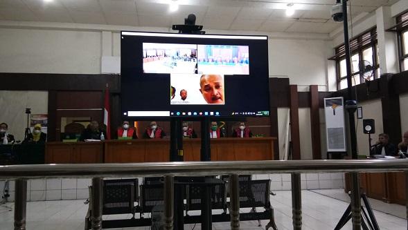 Alex Noerdin saat menjalani sidang tuntutan secara virtual di Pengadilan Tipikor Palembang. (Foto : DedySN)