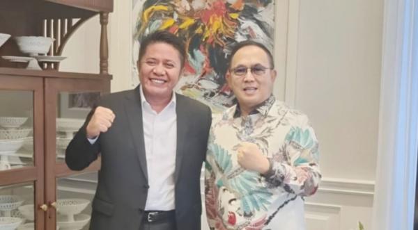 Musionline.co.id, Palembang - Mantan Wali Kota (Wako) Palembang dua periode sekaligus Anggota DPR RI dari Fraksi Partai Gerindra H Eddy Santana Putra (ESP) berkunjung ke kediaman calon Gubernur (Cagub) Sumatera Selatan (Sumsel) H Herman Deru (HD) di Taman Kenten, Sabtu (13/4/2024).