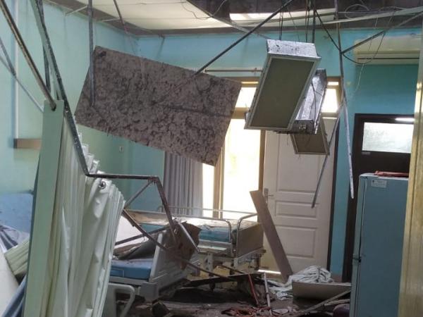 Kondisi bangunan akibat gempa bumi dengan magnitudo (M) 6,7 memicu guncangan sedang hingga kuat beberapa wilayah Jawa Timur (Jatim), Sabtu (10/4).