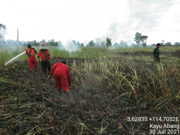 "Satgas yang terdiri dari unsur BPBD, Manggala Agni, TNI, Polri, Satpol PP, pemadam kebakaran dan masyarakat bekerja sama untuk mengendalikan titik api. Saat ini situasi sudah terkendali dan api berhasil dipadamkan," katanya, Sabtu (31/7/2021) petang.